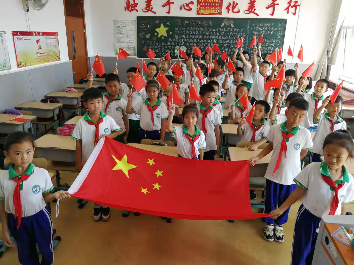 我们以年华作笔,以汗水为墨,从一张又一张白纸上挥洒出红橙黄绿蓝靛紫,我们是在阳光下折射的班级——五年1班。三十七张来自内......